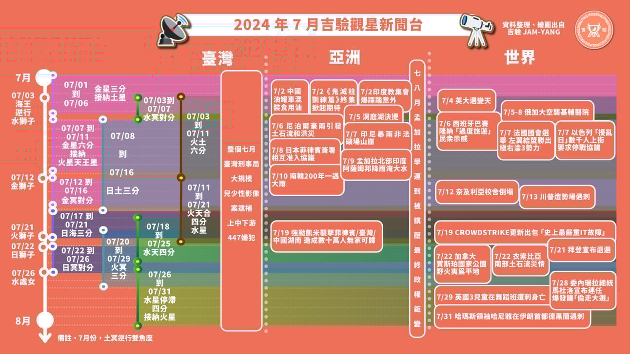 2024 年 7 月十大新聞 星盤解讀